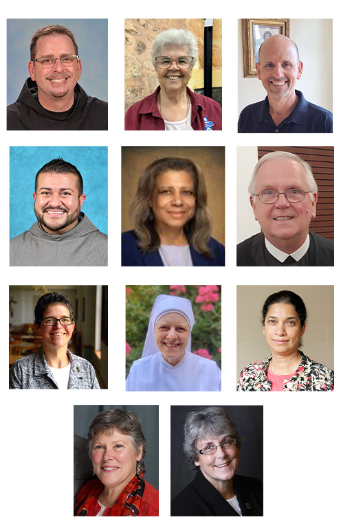 Brother Ronald Hingle, S.C.; Father Toby Collins, C.R.; Sister Gayle Lwanga Crumbley, R.G.S.; Sister Anna Marie Espinosa, I.W.B.S.; Sister Michele Vincent Fisher, C.S.F.N.; Sister Maria Iannuccillo, S.S.N.D.; Sister Kristin Matthes, S.N.D. deN.; Father Don Miller, O.F.M.; Sister Priscilla Moreno, R.S.M.; Sister Anita Quigley, S.H.C.J.; Brother Tom Wendorf, S.M.; and Father Vince Wirtner, C.P.P.S.