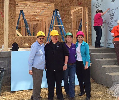 Leaders from four of the 26 religious communities sponsoring the building of a home in Louisville, Kentucky for a low-income family: Sister Janet Marie Peterworth, O.S.U.; Father John Schork, C.P.; Sister Teresa Gunter, O.S.B.; and Sister Nancy Gerth, S.C.N.