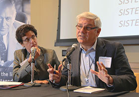 Brother Paul Bednarczyk, C.S.C. takes part in a panel discussion of a study of public perceptions of Catholic sisters. |