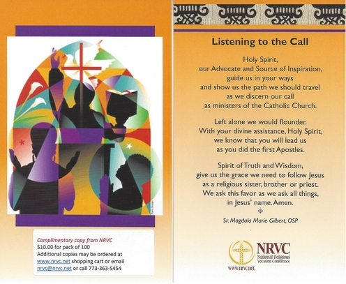 These colorful, postcard-size prayer cards make a great giveaway, especially at events that attract a diverse group of inquirers. They are also an ideal Christmas card insert. The front of the card has space to place contact information for your community. This prayer card was designed by the NRVC Black Religious Committee and comes in a pack of 100. $5 for members. $8 non-members. Order them here.