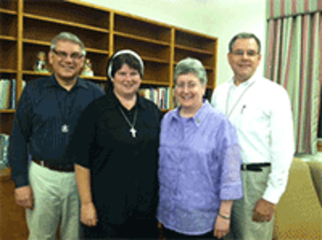 Leadership Team members pictured here: Brother Paul Bednarczyk, CSC, executive director; Sisters Michele Vincent Fisher, CSFN and Maria Iannuccillo, SSND; and Brother Ronald Hingle, SC.
