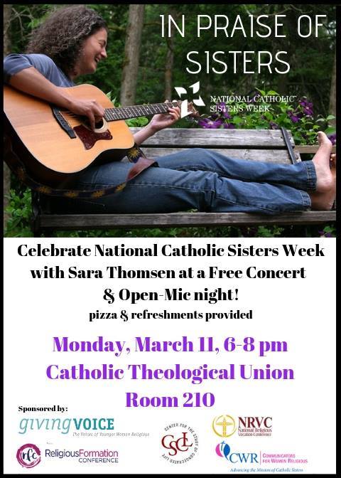 NRVC will be celebrating the week on March 11 with a free concert by Sara Thomsen and an open mic night to be held at Catholic Theological Union from 6-8 p.m. The festivities are co-sponsored by NRVC and the organizations listed on the poster to the left.